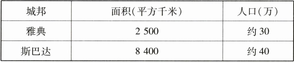 1. 如表所示内容体现了古代希腊城邦的特点是