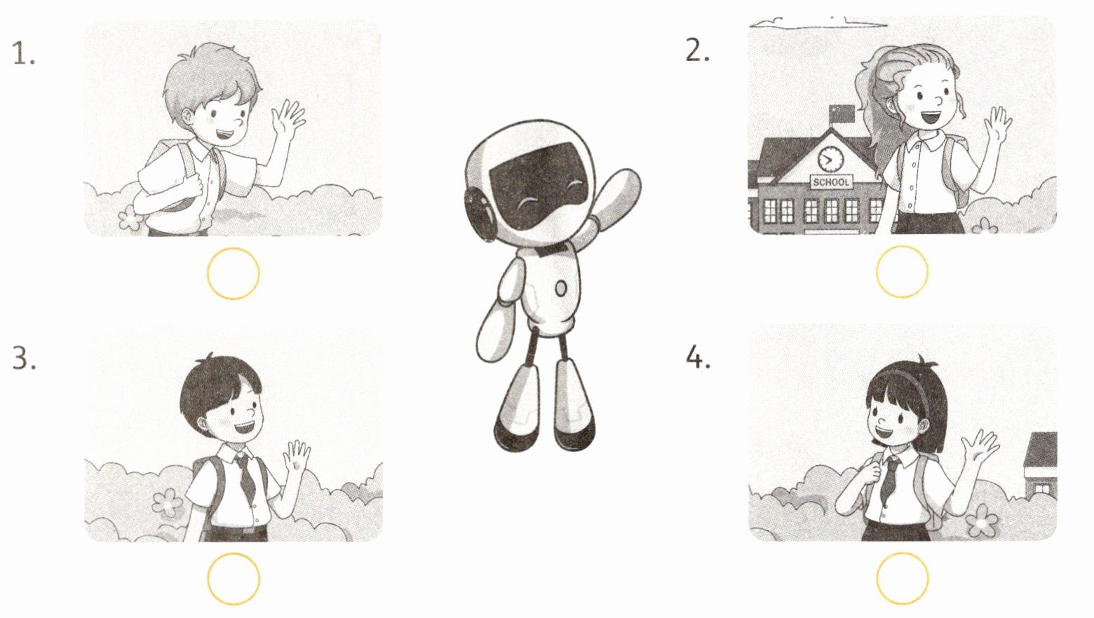 二、Look, read and tick. 英语课上,你会如何与同学们打招呼?请你看图片,读一读,勾选正确的句子。