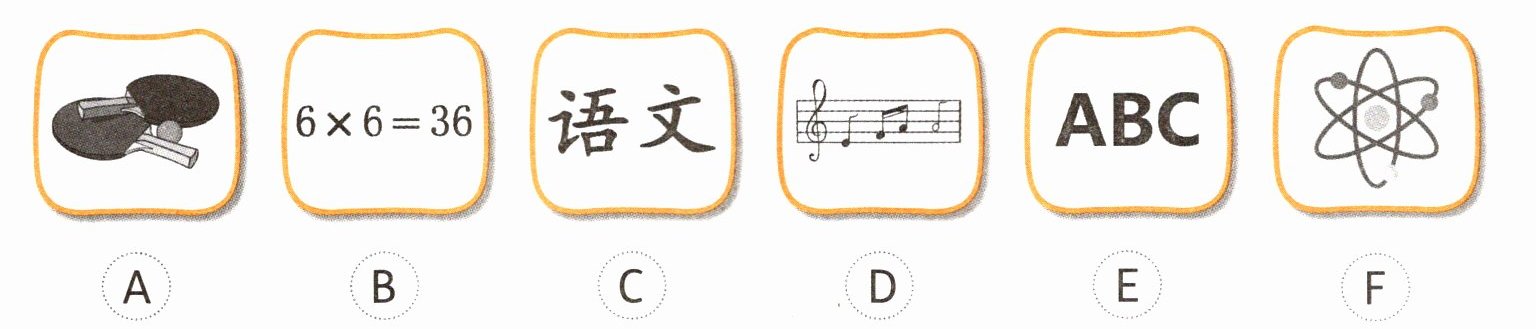 一、Listen and choose. Eve 正在介绍自己的任课老师。听一听,选择正确的选项,将学科的字母序号写在横线上。