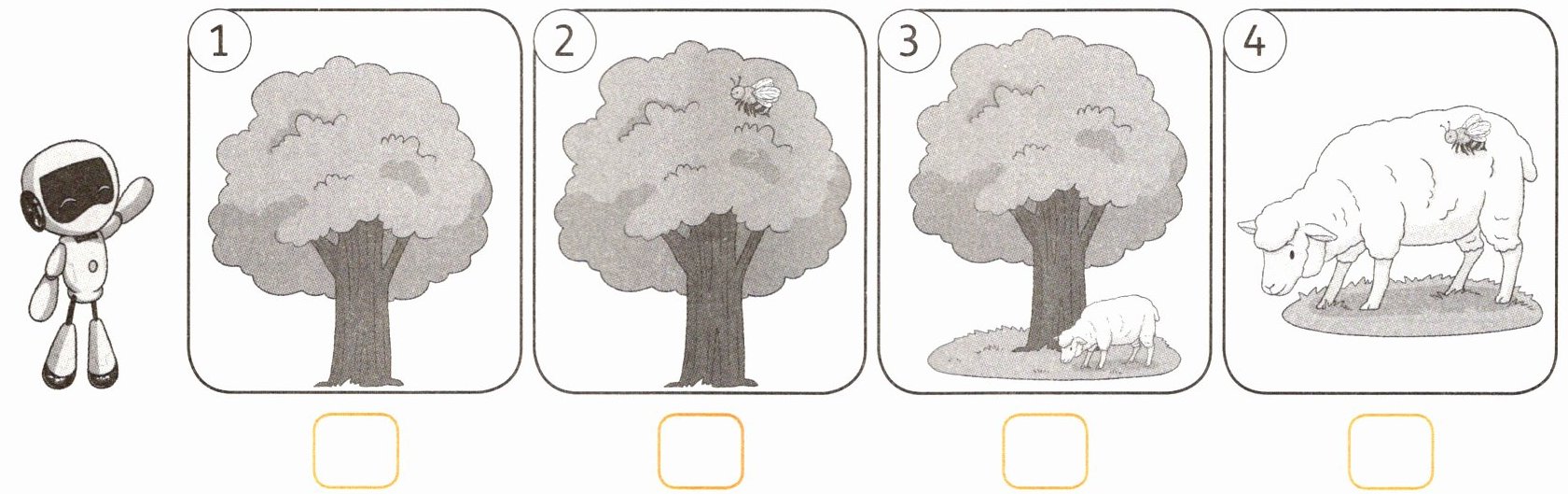 二、Read and match. Sam 正在讲绘本故事。读一读,将句子的字母序号写在意思相符图片的下方。