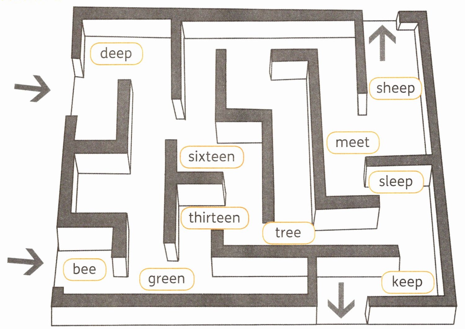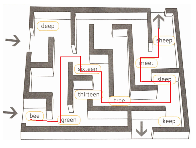 一、Listen and draw. 大家一起来玩走迷宫游戏!听一听,连单词,画出走出迷宫的路线。