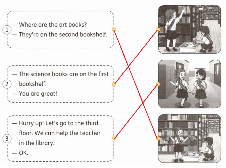 3. — Hurry up! Let’s go to the third floor. We can help the teacher in the library.