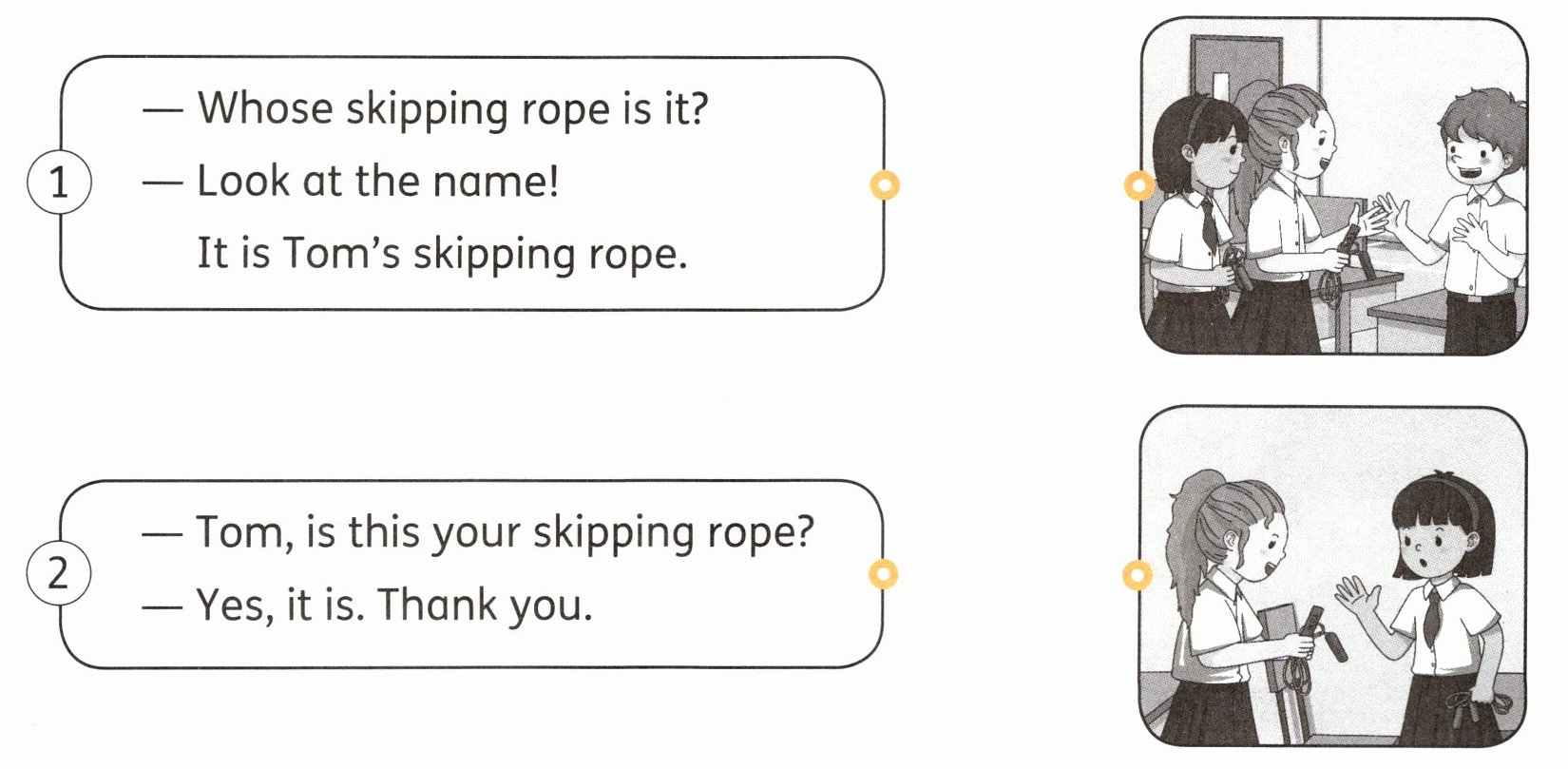 二、Read and match. Eve 与 Wang Lu 在教室里发现了 Tom 的跳绳。读一读,将对话与意思相符的图片连线。