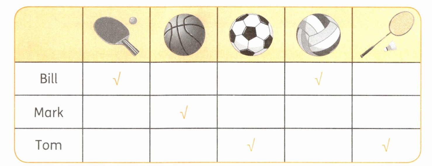 二、Look, read and write. 看表格,读一读,书写单词补全句子。