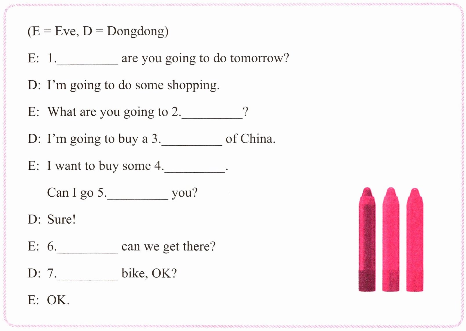 1. What 2. buy 3. map 4. crayons 5. with 6. How 7. By