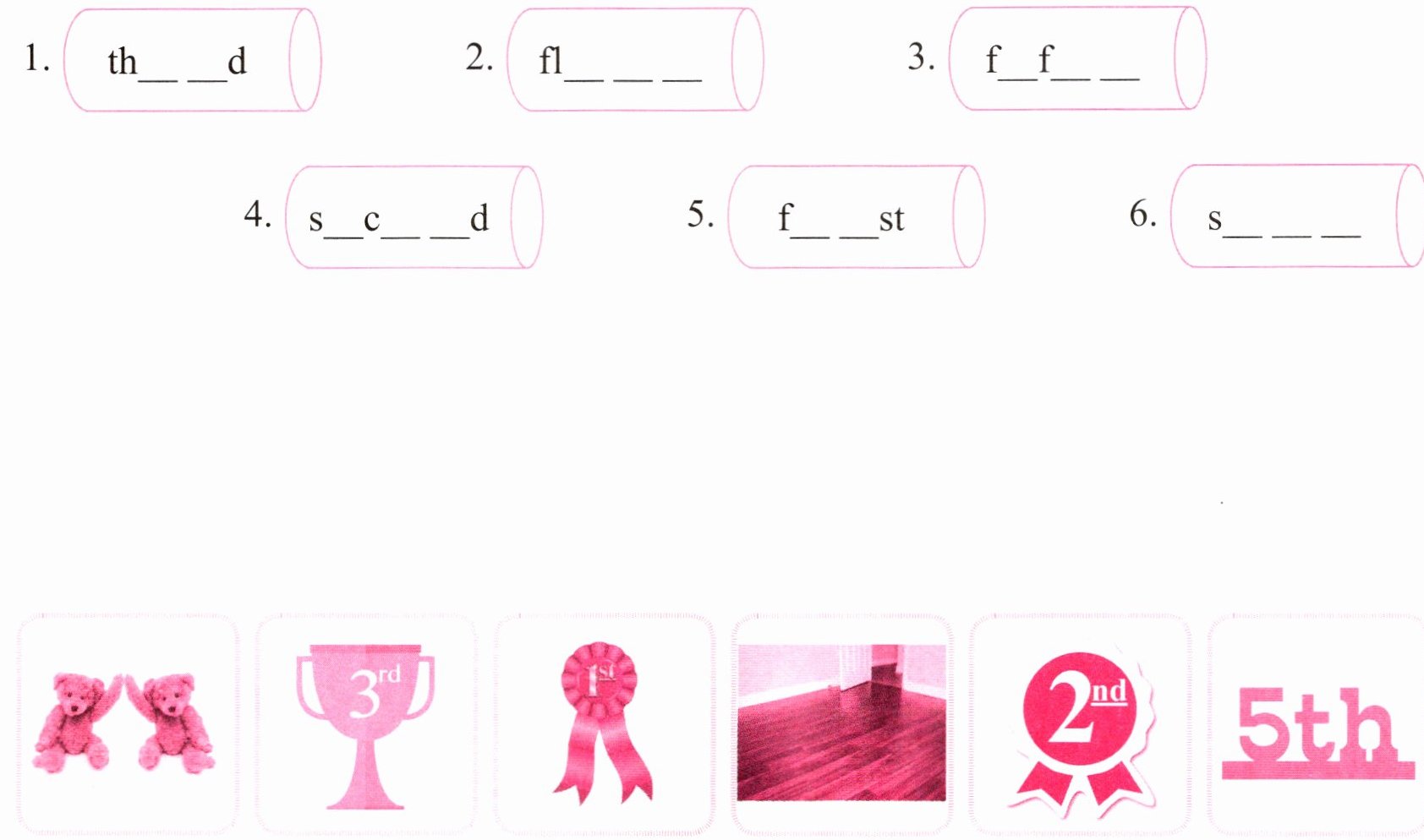 一、Listen, write and match. 听录音,补全单词,然后匹配相应的图片。