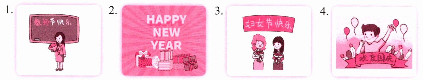 1. September 10th 2. January, New Year's 3. 8th, Women's 4. October 1st 日历图略