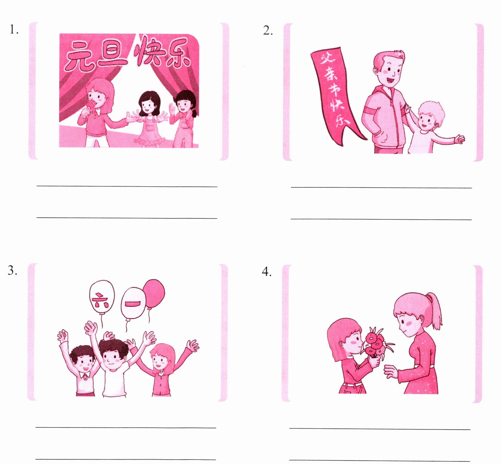 十二、Look, write and draw. 看图,补全句子,并按照月份顺序画出日历图。