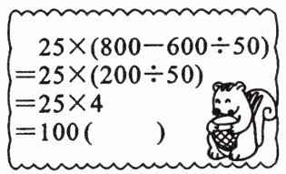 2. $\begin{array}{l}25 × (800 - 600 ÷ 50) \\= 25 × (200 ÷ 50) \\= 25 × 4 \\= 100(\quad)\end{array}$