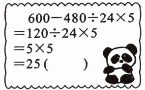 1. $\begin{array}{l}600 - 480 ÷ 24 × 5 \\= 120 ÷ 24 × 5 \\= 5 × 5 \\= 25(\quad)\end{array}$