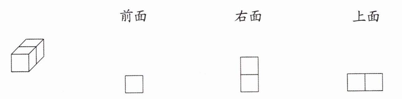 3. 用两个同样大的正方体摆一个长方体(如下图),从前面、右面和上面分别看到的是哪个图形?连一连。