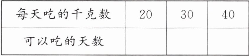 3. 学校食堂运来一批大米,如果每天吃 20 千克,这些大米可以吃 12 天。如果每天吃 30 千克,可以吃多少天?每天吃 40 千克呢?