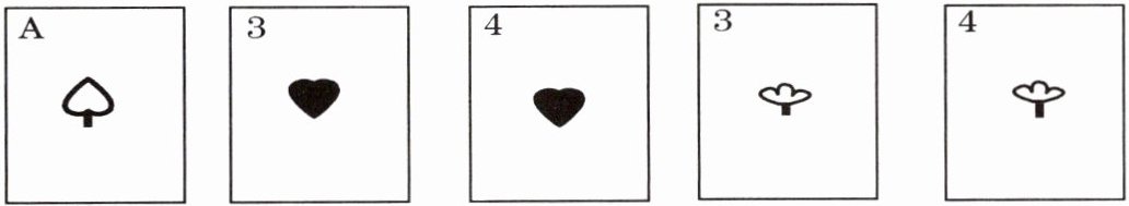3. 下面有 5 张牌。如果两人玩摸牌游戏,你能帮助他们设计一个公平的游戏规则吗?把你的设计写在横线上。