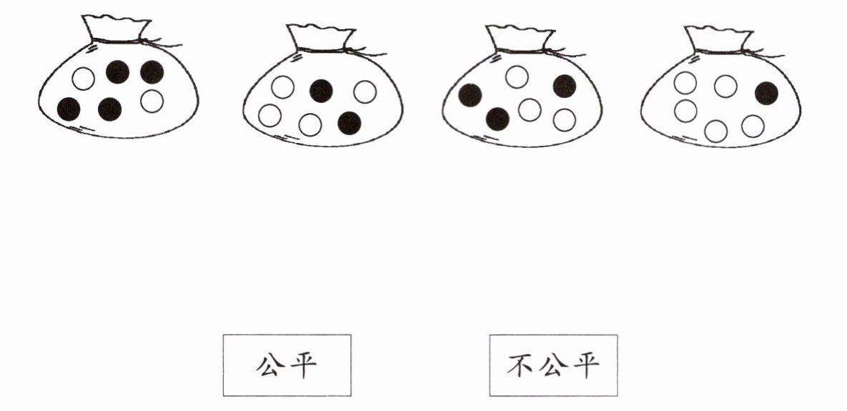 公平——第三个布袋;不公平——第一、二、四个布袋