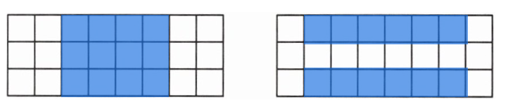 4. 在下面的方格中涂上阴影,使得任意掷一个骰子,骰子落在空白方格和阴影方格的可能性一样大。你有不同的方法吗?如果有,在下面方格中分别画出来。