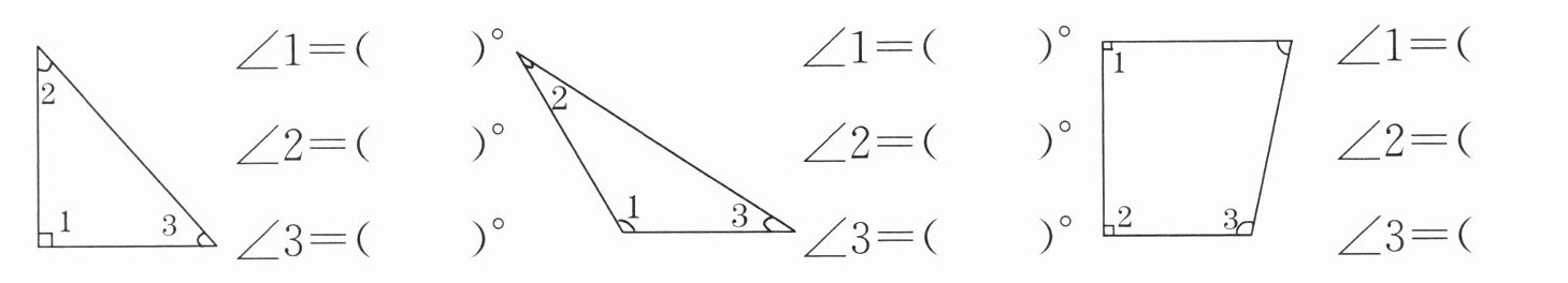 4. 如果你身边没有三角尺和量角器,你能想办法量出下列各度数的角吗?试试吧,你一定能行的。