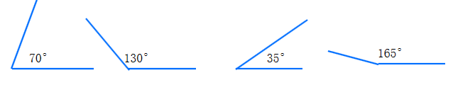 5. 用量角器分别画出 70°,130°,35°和 165°的角。
