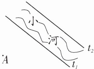 3. 下图中,A点是张军家,现在要修一条石子路,以方便到河边,怎样修可使线路最短?标出最短路线,并简要说明理由。