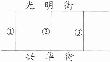 理由:光明街与兴华街是两条平行线,根据“两条平行线之间的距离处处相等”,第①、②、③条路都是两条平行线之间的垂线段,所以长度相等,均为30米。