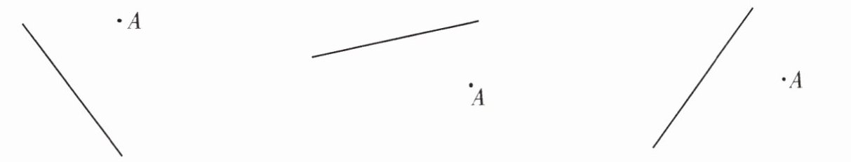 2. 经过 $ A $ 点分别画出已知直线的平行线和垂线。