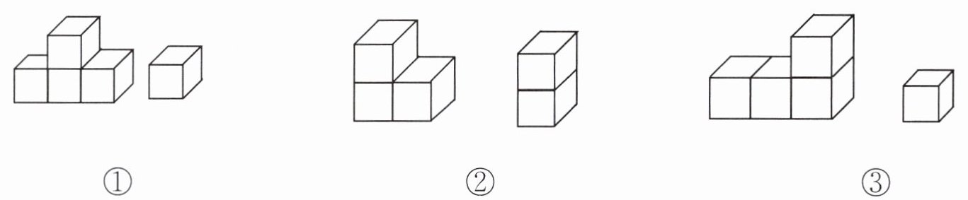 2. 用五个同样大小的正方体摆成下面的不同形状,观察并填空。