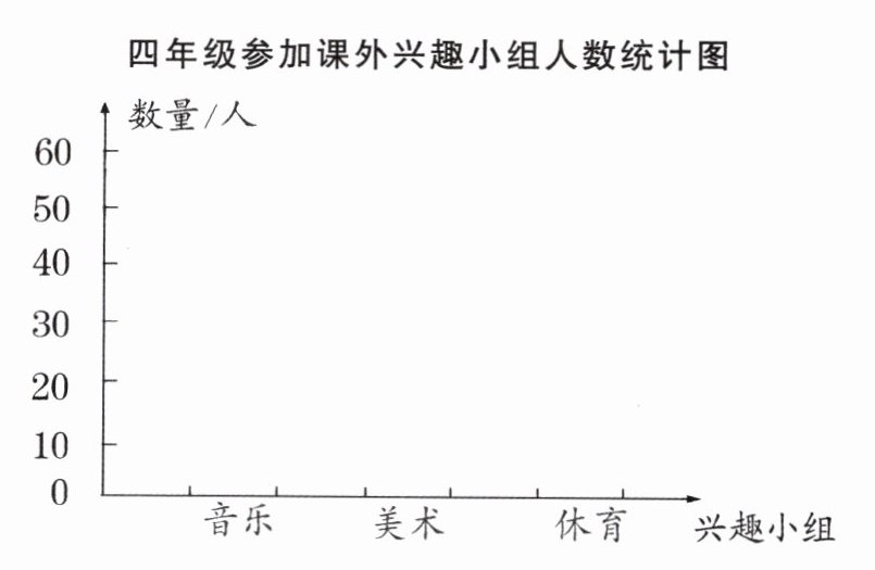 4. 下面是四年级参加课外兴趣小组人数统计表。根据表格,完成统计图,并解答问题。
