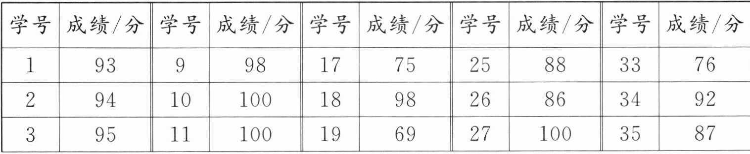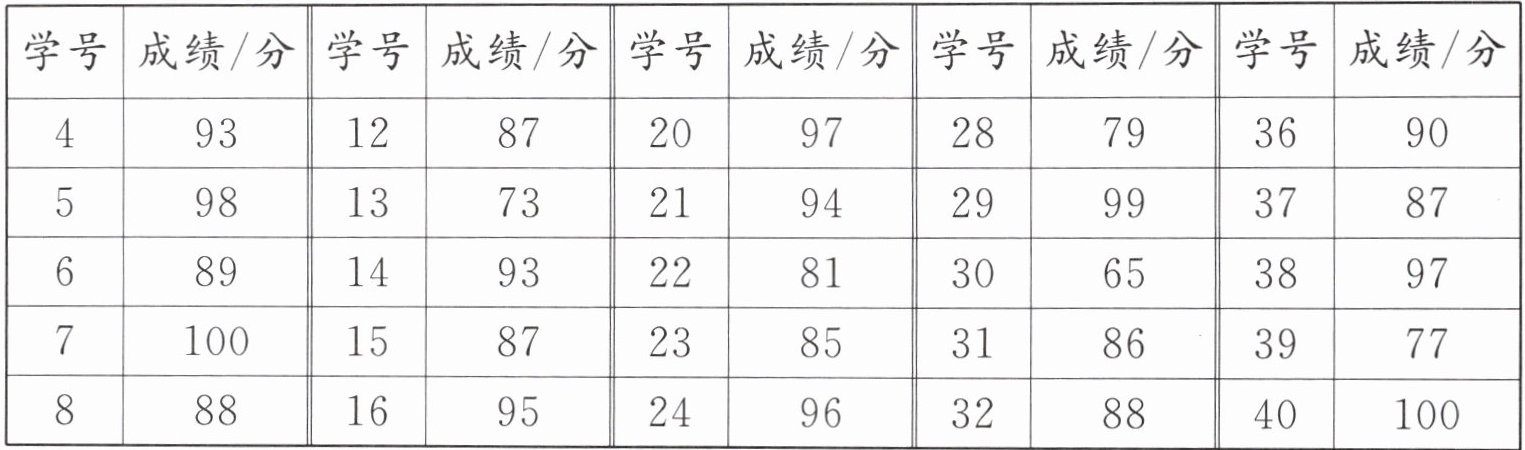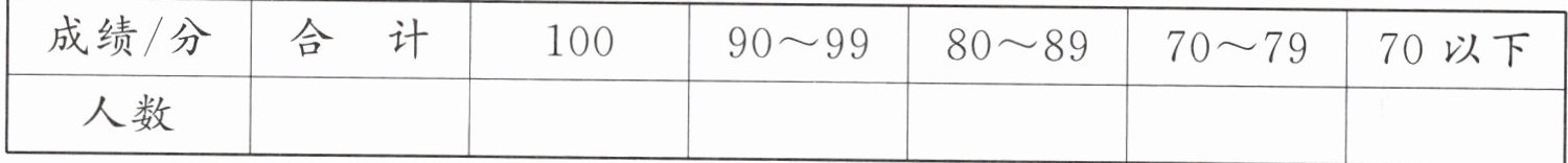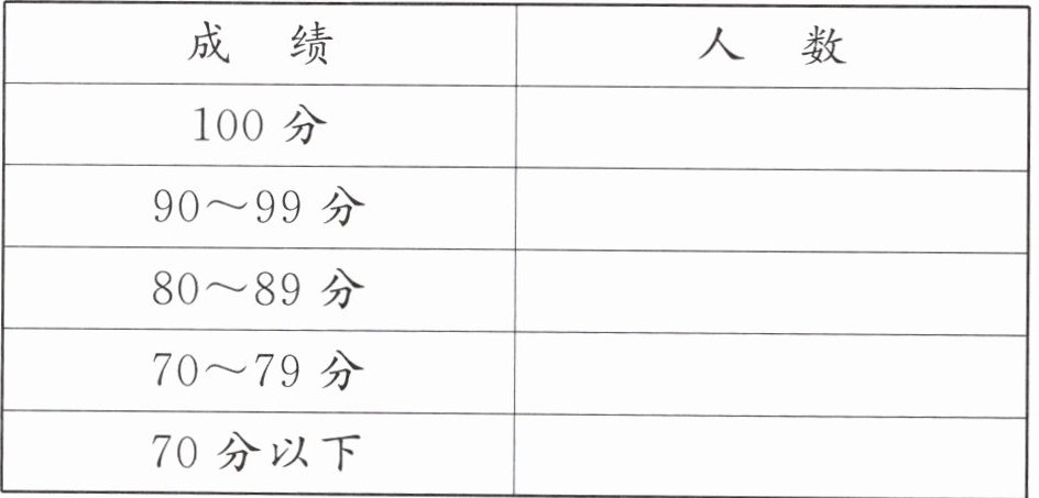 (1)将数据分成五个分数段,用画“正”字的方法整理。