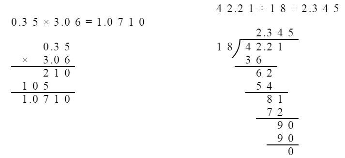 $0.35×3.06$ $42.21÷18$ $25.6÷0.032$