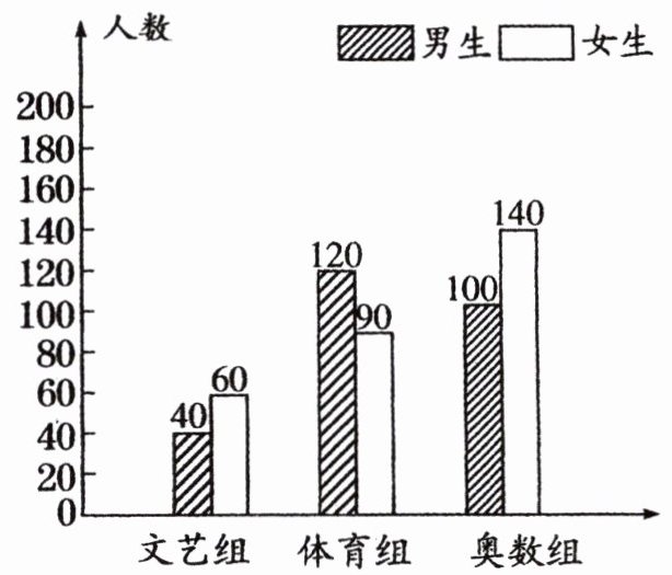 1. 体育组 奥数组 2. 奥数组 文艺组 3. 80 人 4. 50 人 5. 550 人