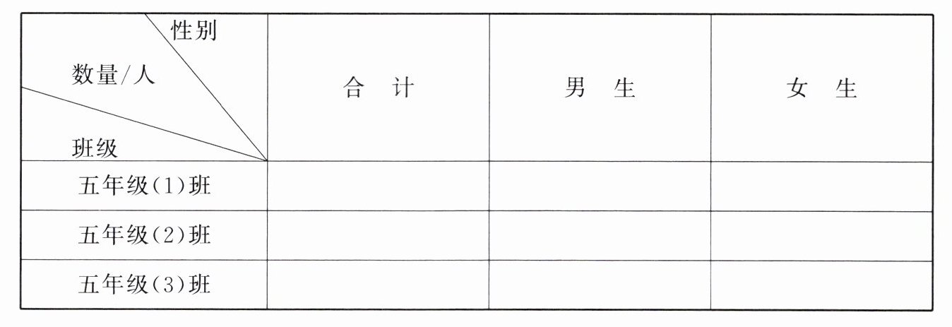 1. 下面是2023年11月对希望小学五年级三个班同学参加学校兴趣小组的人数调查情况: