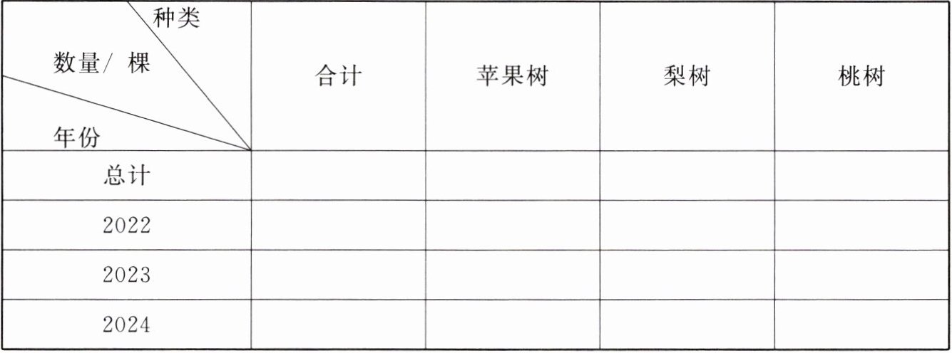 2. 某果园2022~2024年栽各种果树的棵数如下: