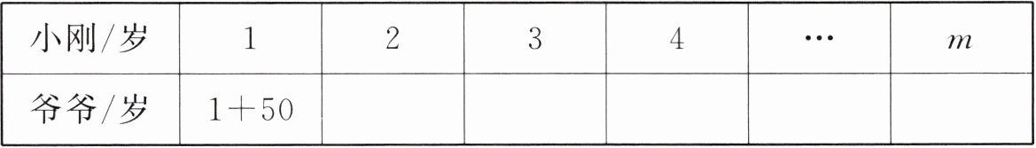 6. 根据“爷爷的年龄比小刚大50岁”,填写下表。