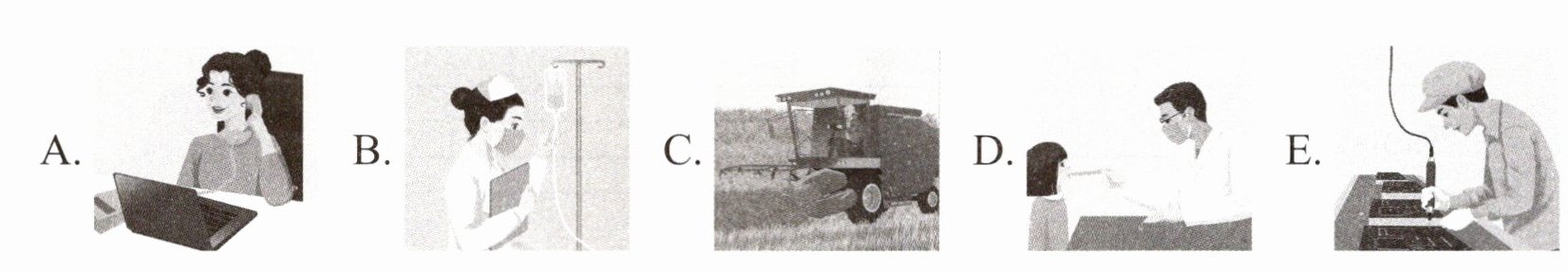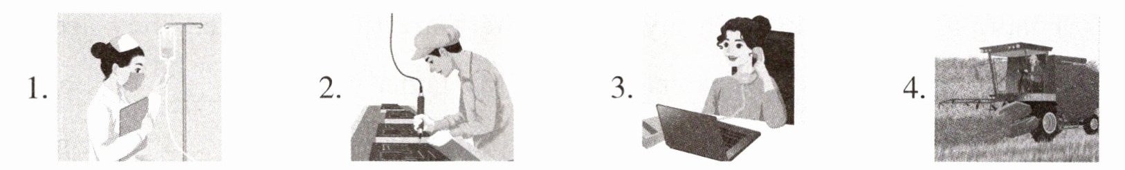 1. nurse 2. factory worker 3. office worker 4. farmer