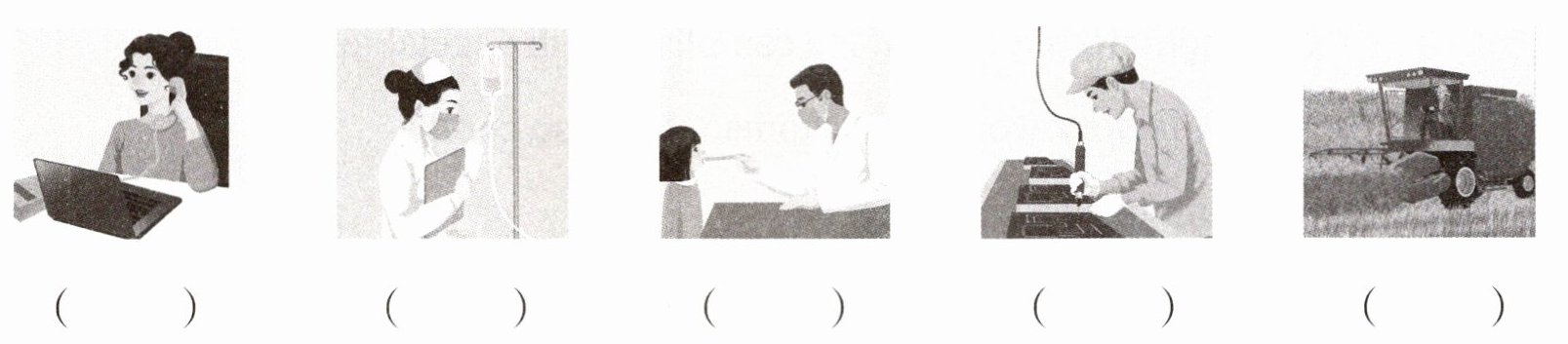 一、Listen and number. 英语课上,同学们正在练习如何询问家人职业的对话。请听一听,根据听到的顺序为下列图片排序(1—5)。
