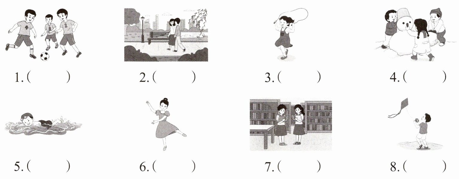 一、Listen and tick. 同学们的课外活动丰富多彩,Lily 在小组内做了一个小调查。请听一听,在同学们经常做的活动下画“√”。