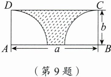 9. 如图,长方形 $ABCD$ 的长是 $a$,宽是 $b$,分别以 $A$,$B$ 为圆心,$b$ 为半径作扇形.