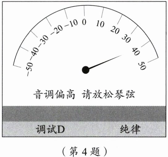 4. 为了保持音准,弹奏者常使用调音器对每根琴弦进行调音.如图所示是某古筝调音器软件的界面,指针指向 $40$ 表示音调偏高,需放松琴弦.下列指针指向的数字中表示需拧紧琴弦,且最接近标准音(指针指在 $0$ 处为标准音)的是(