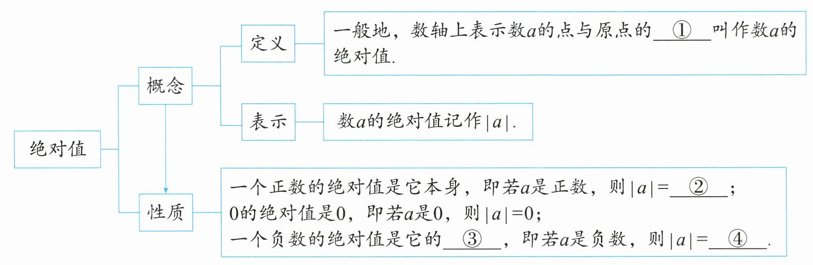 ①距离;②$a$;③相反数;④$-a$.