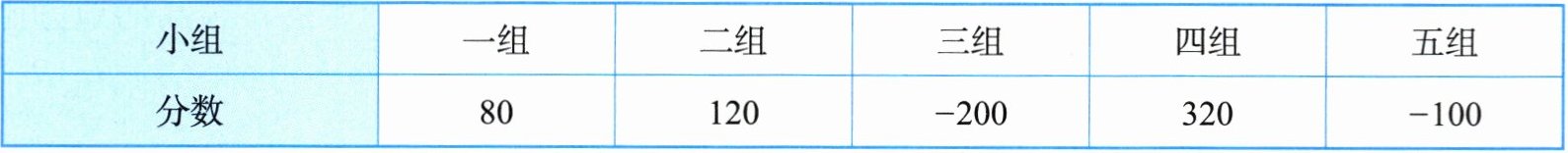6. 某校七年级(4)班开展“环保知识”抢答活动,规定答对一题加 $20$ 分,答错一题扣 $20$ 分. 活动结束时,记分员公布了 $5$ 个小组的得分情况,如下表: