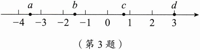 3. 有理数$a$,$b$,$c$,$d$在数轴上对应的点的位置如图所示,则正确的结论是(