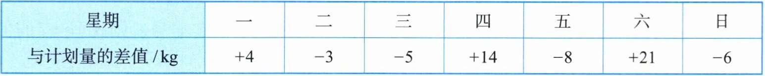 14. 随着互联网的普及,原有的销售模式发生改变,很多农产品实行了网上销售. 小明把自己家的冬枣也通过网络进行销售. 他原计划每天卖 100 kg 冬枣,但由于种种原因,实际每天的销售量与计划量不符,下表是某星期各天的销售情况(超额记为正数,不足记为负数. 单位:kg):