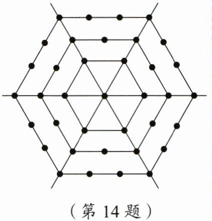 14. 如图是一个形如六边形的点阵,从内向外第 $1$ 层是 $1$ 个点,第 $2$ 层每边有 $2$ 个点,第 $3$ 层每边有 $3$ 个点,第 $4$ 层每边有 $4$ 个点······