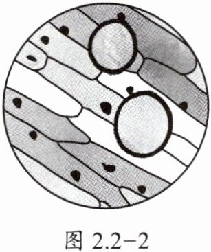 6. 小慧用显微镜观察洋葱鳞片叶内表皮细胞时,在视野中看到了如图 2.2 - 2 所示的物像,这可能是制作临时装片时某一步骤操作不当所致。下列步骤中最可能的是(