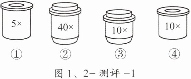 9. 在图1、2 - 测评 - 1所示的镜头中,想要使观察到的细胞数目最多,可以选择的镜头组合是(