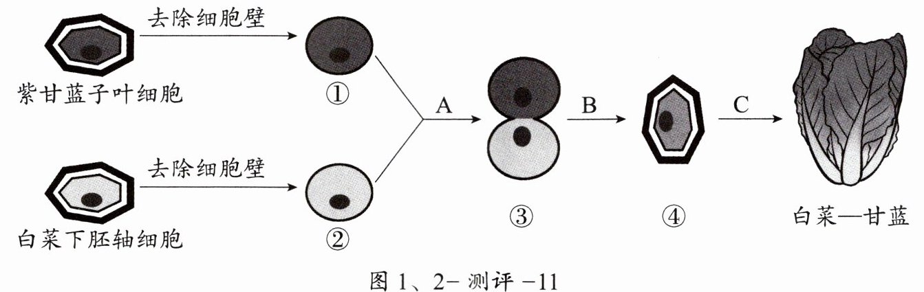 25.(5分)“白菜—甘蓝”是科学家利用紫甘蓝子叶细胞和白菜下胚轴细胞,通过生物技术培育出来的蔬菜新品种。该品种有些特征像白菜,也有些特征像紫甘蓝,培育过程如图1、2 - 测评 - 11所示。