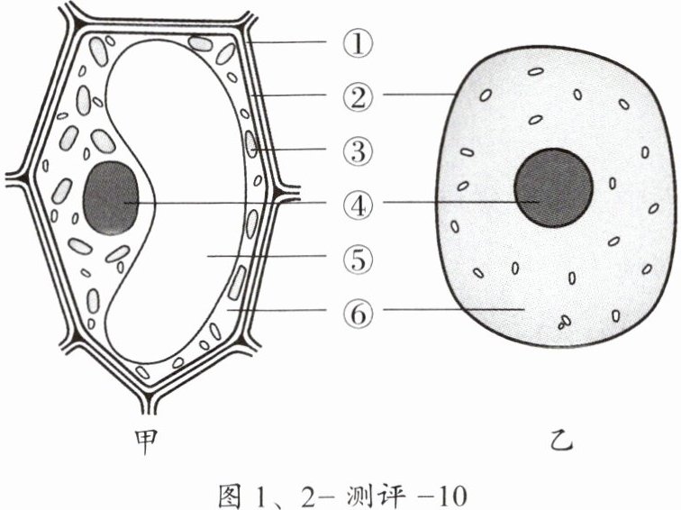 24.(5分)小慧看到妈妈做的苋菜鱼头汤汤水是红色的,十分好奇,于是查找资料研究其原因。她发现原来苋菜中含有天然的红色素,这种红色素藏于它的细胞中。当苋菜被烹饪时,细胞结构被破坏,红色汁液就会渗出。图1、2 - 测评 - 10是两种细胞结构示意图,回答下列问题。
