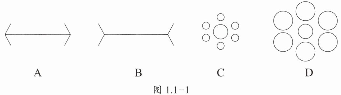 (1)观察图 1.1 - 1,你觉得图 A 和图 B 中的线段一样长吗?