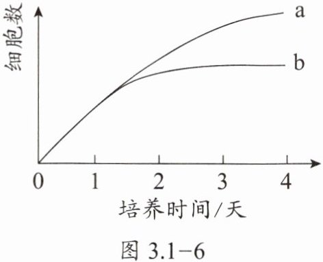 (1)科研人员将人的某种癌细胞和正常体细胞分别进行体外培养,培养4天后结果如图3.1-6所示,图中代表癌细胞数量变化的曲线是