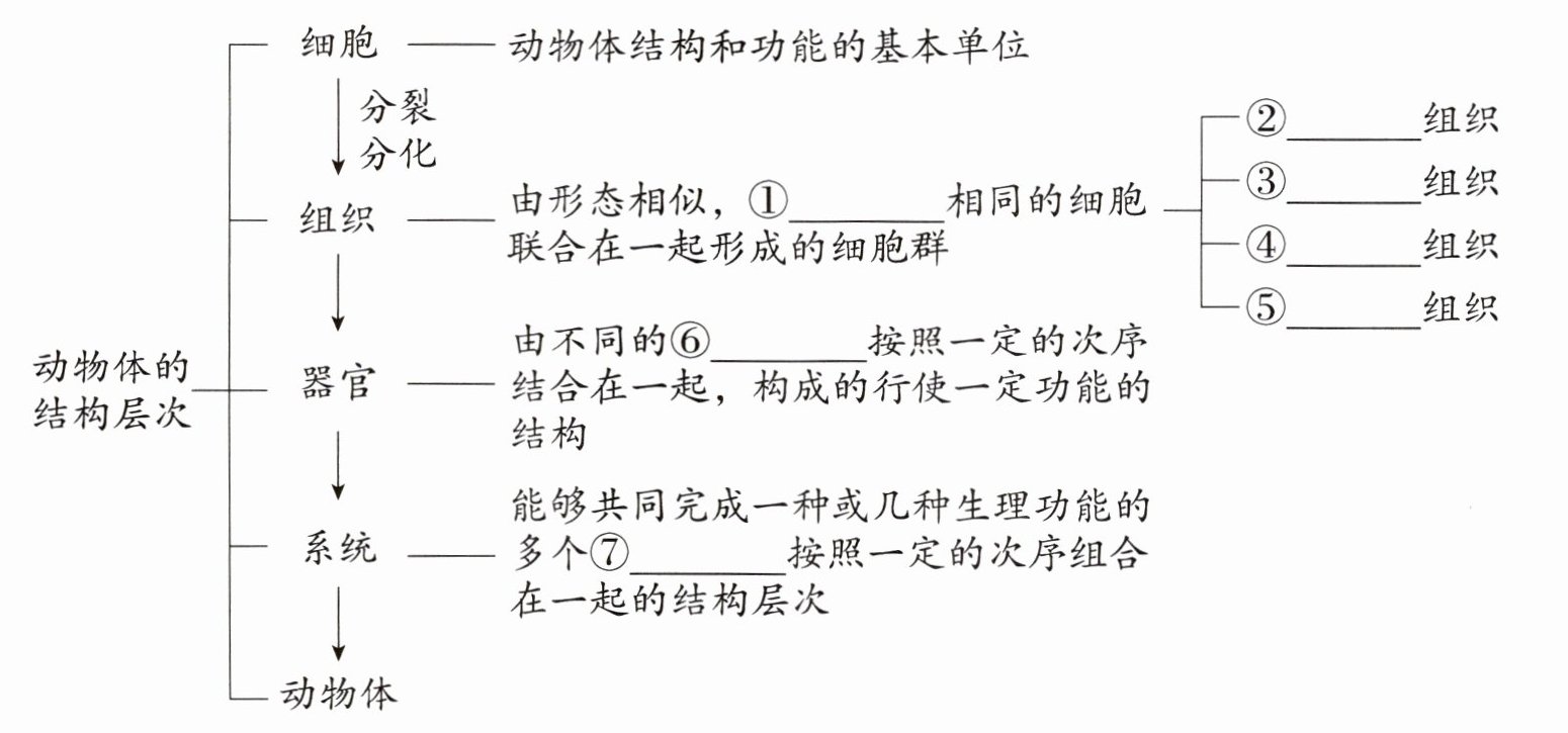 ①结构和功能;②上皮;③肌肉;④结缔;⑤神经;⑥组织;⑦器官