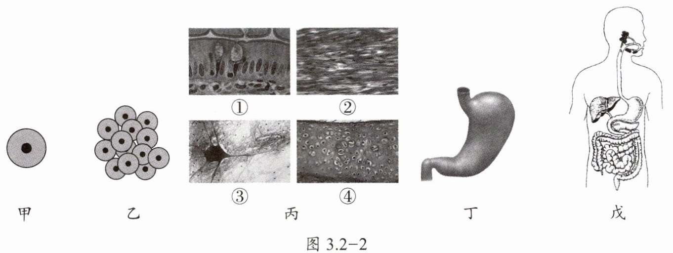 10. 图 3.2 - 2 所示为人体的不同结构层次,回答下列问题。